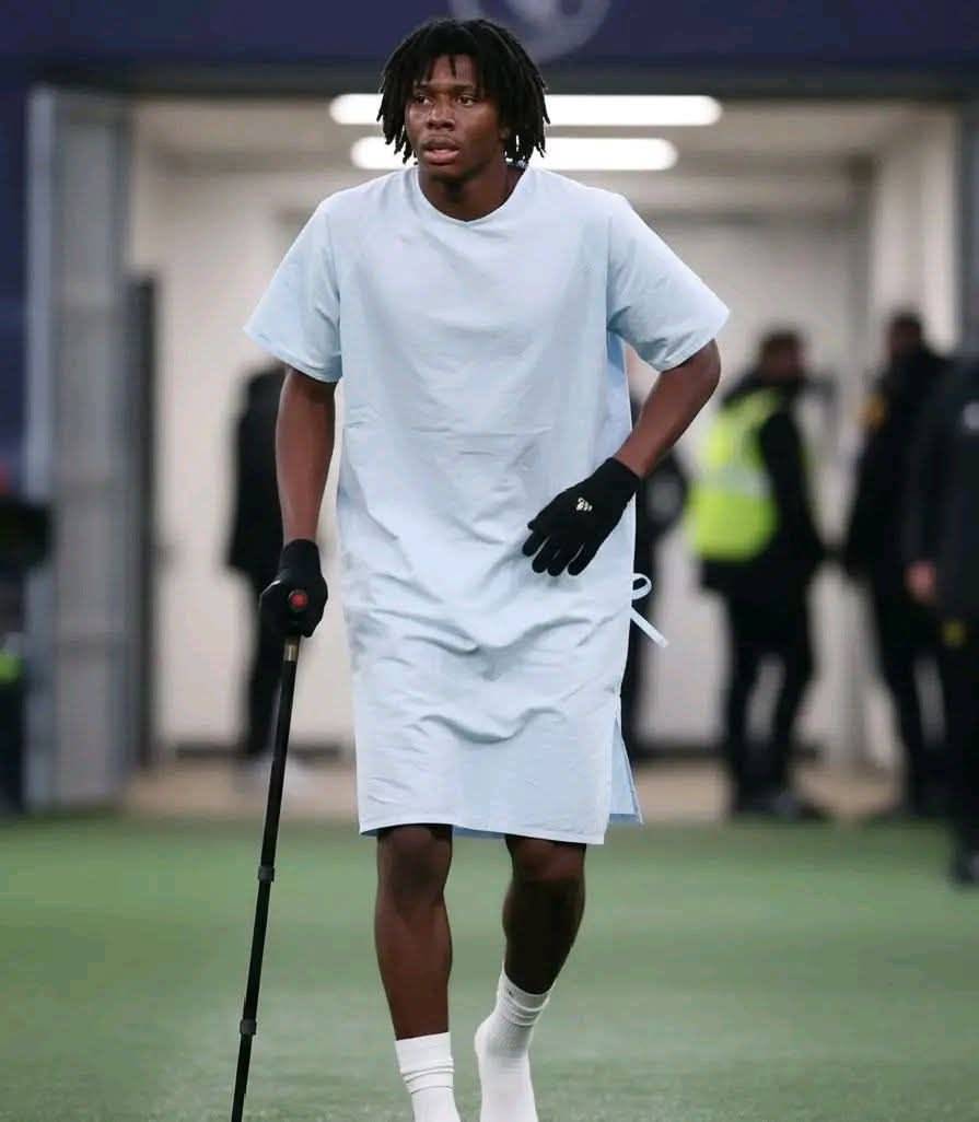 凭借出色的表现,多古当选了曼联1月份最佳球员,但伤病让他不得不暂时停下自己的脚步。对阿森纳的比赛后,英媒拍摄到多古拄拐出现在卡林顿的照片。